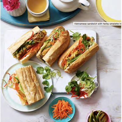 For something deliciously different for your brunch, try food writer Uyen Luu’s egg banh mi – a Vietnamese sandwich with soft herby omelette in a crusty baguette with pickled carrot, cucumber and chilli.