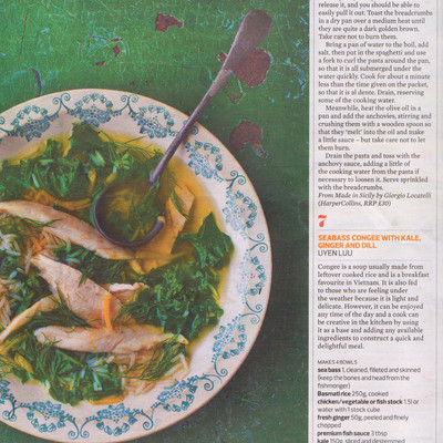 Here is my recipe of sea bass, kale, ginger and dill in The Observer Food Monthly (with other recipes from my food heroes: Nigel Slater, Angela Hartnett, Tom Kerridge, Ottolenghi…). You can also find some other congee recipes in my book, My Vietnamese Kitchen.