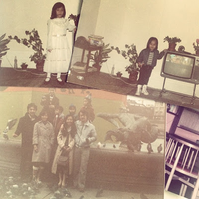 When I stepped out of the car, I heard the quietness and my father picked me up into his arms. The serene, still, snow dusted road was filled with grand tall trees with their arms of branches waving at the sky. The white houses were gigantic and beautiful and I was in awe of the spectacle and my dreams of being a princess dressed in white with a red riding hood coat came true. I was the happiest girl inside the arms of my father. I took comfort and buried my face inside his warm neck next to his long hair tucked somewhere between his ears and the synthetic fur collar as he carried me up the stone entrance staircase to the door. I smiled so big, I felt the air turn my buck teeth dry into ice and my red button nose dripped everywhere.
