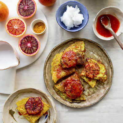 Coconut Crepes with Maple & Blood Oranges (Vita Coconut Oil)